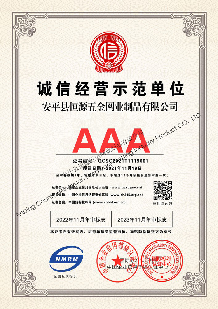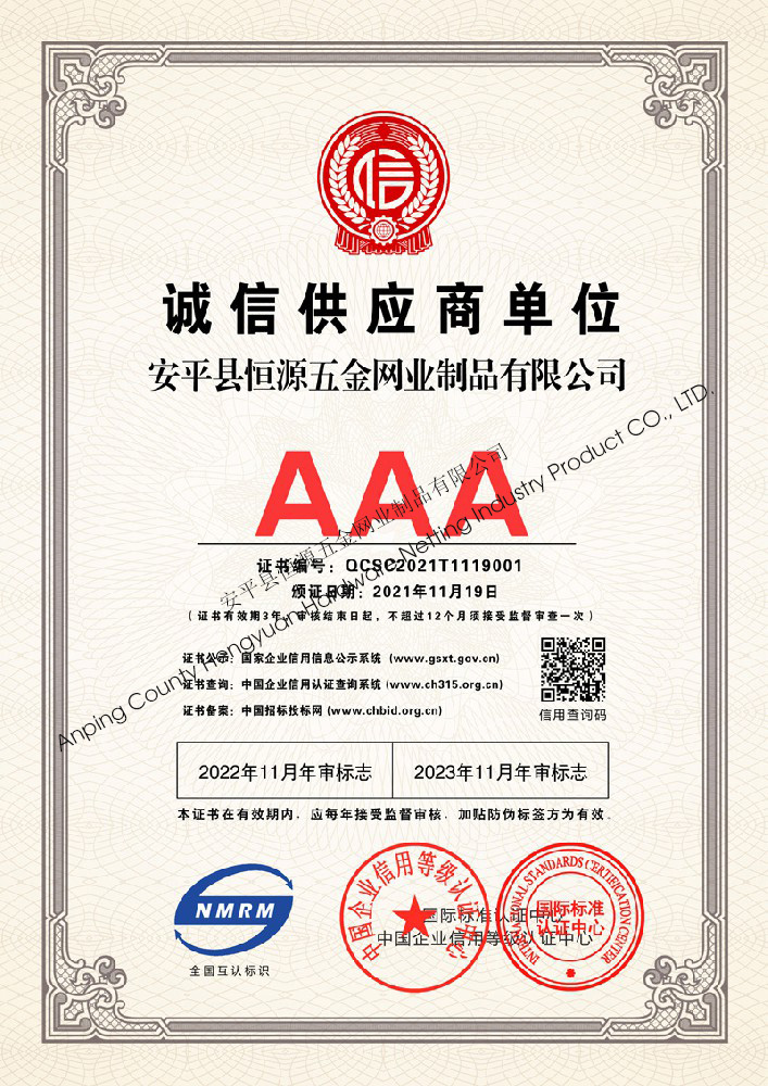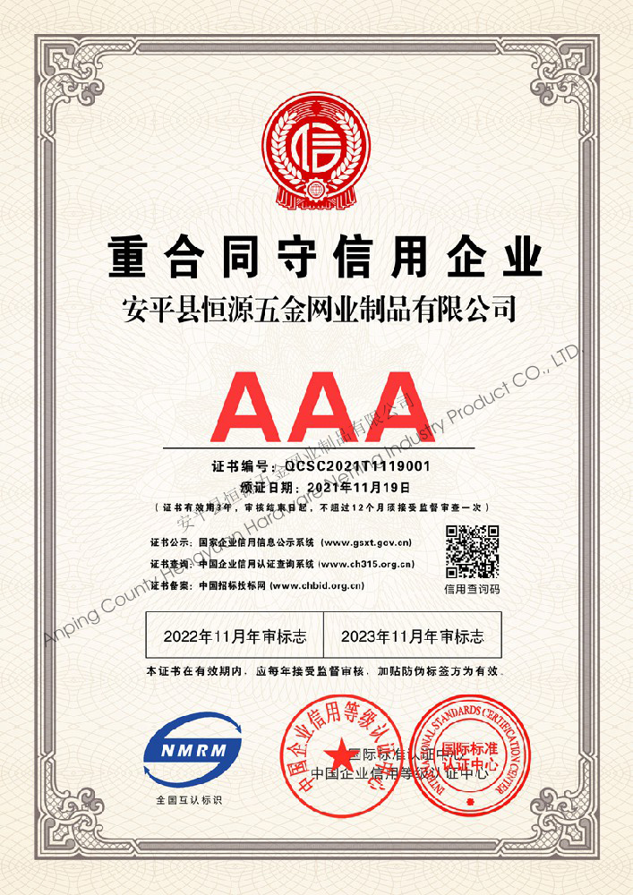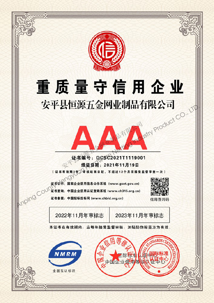 多年來,安平縣恒源五金網(wǎng)業(yè)制品有限公司堅(jiān)持“科技興企、質(zhì)量立業(yè)”的經(jīng)營理念和“誠心為本、客戶至上”的合作宗旨,優(yōu)化生產(chǎn)工藝,打造優(yōu)質(zhì)產(chǎn)品,提供完善的服務(wù),受到國內(nèi)外客戶的一致好評,產(chǎn)品行銷全國各地,并出口美國、德國、韓國、日本、臺灣等國家和地區(qū)。